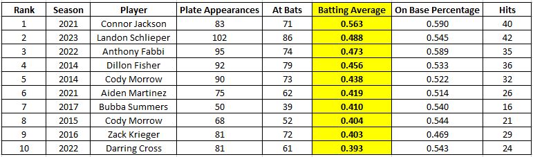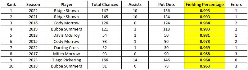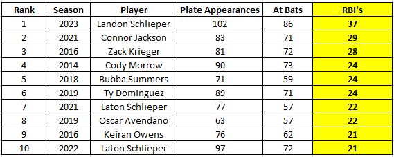 Here are the "Top 10" CV Ram players over the past 10 years when it comes to offensive, defensive & pitching stats.